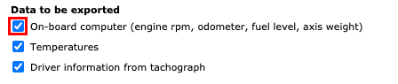 6. Check “On-board computer (engine rpm, odometer, fuel level, axis weight)”